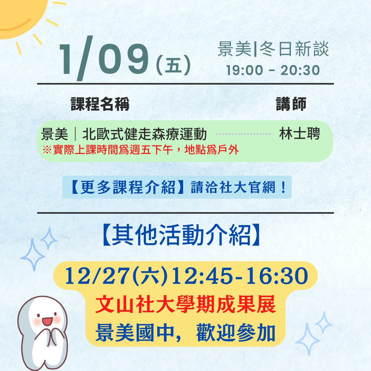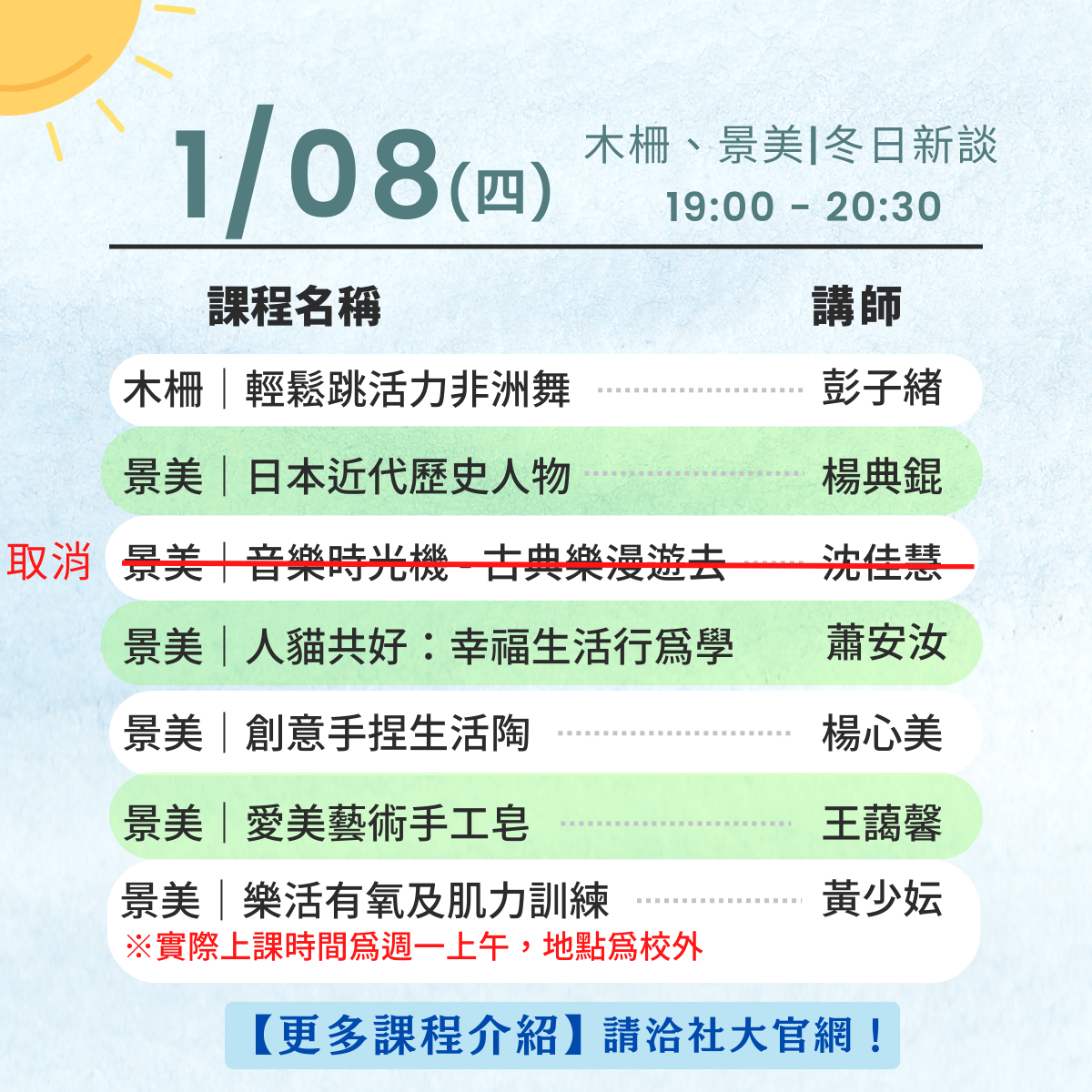 ▎實體場次教室將於當天公告於校區川堂入口