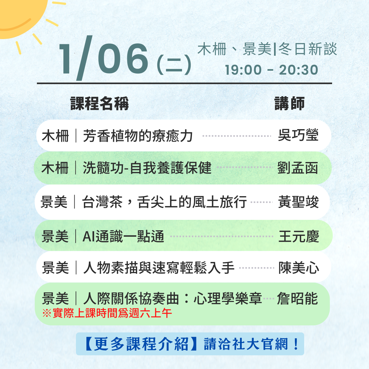 115 春季班新課免費試聽1.5小時,當場還會發放「該課程115春季班」學分費9折優惠券!!! 事不宜遲趕緊來參加吧!