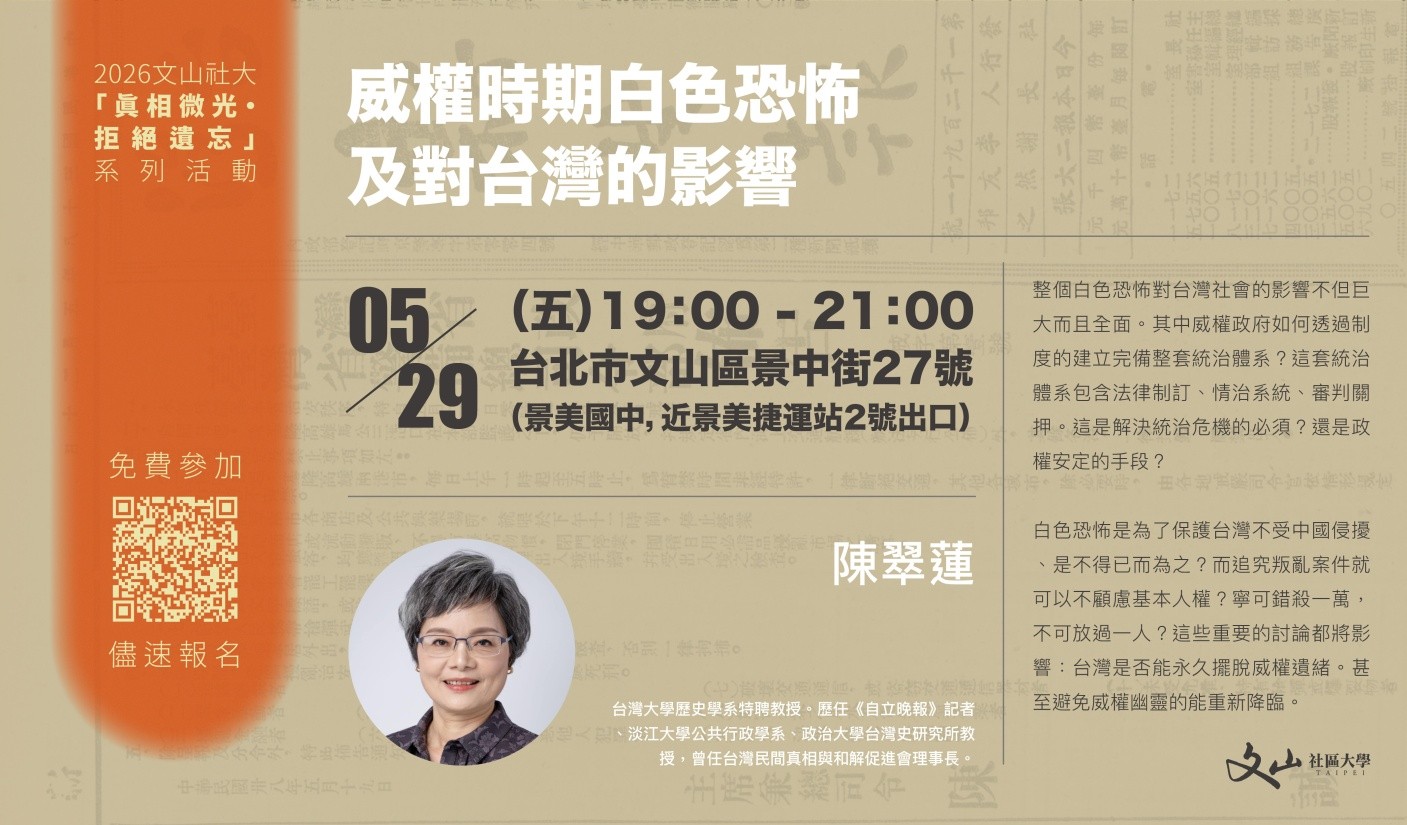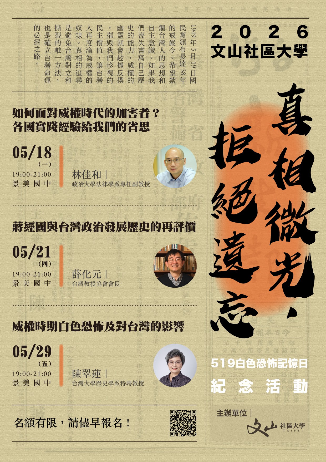 2026「真相微光.拒絕遺忘」519白色恐怖記憶日紀念活動