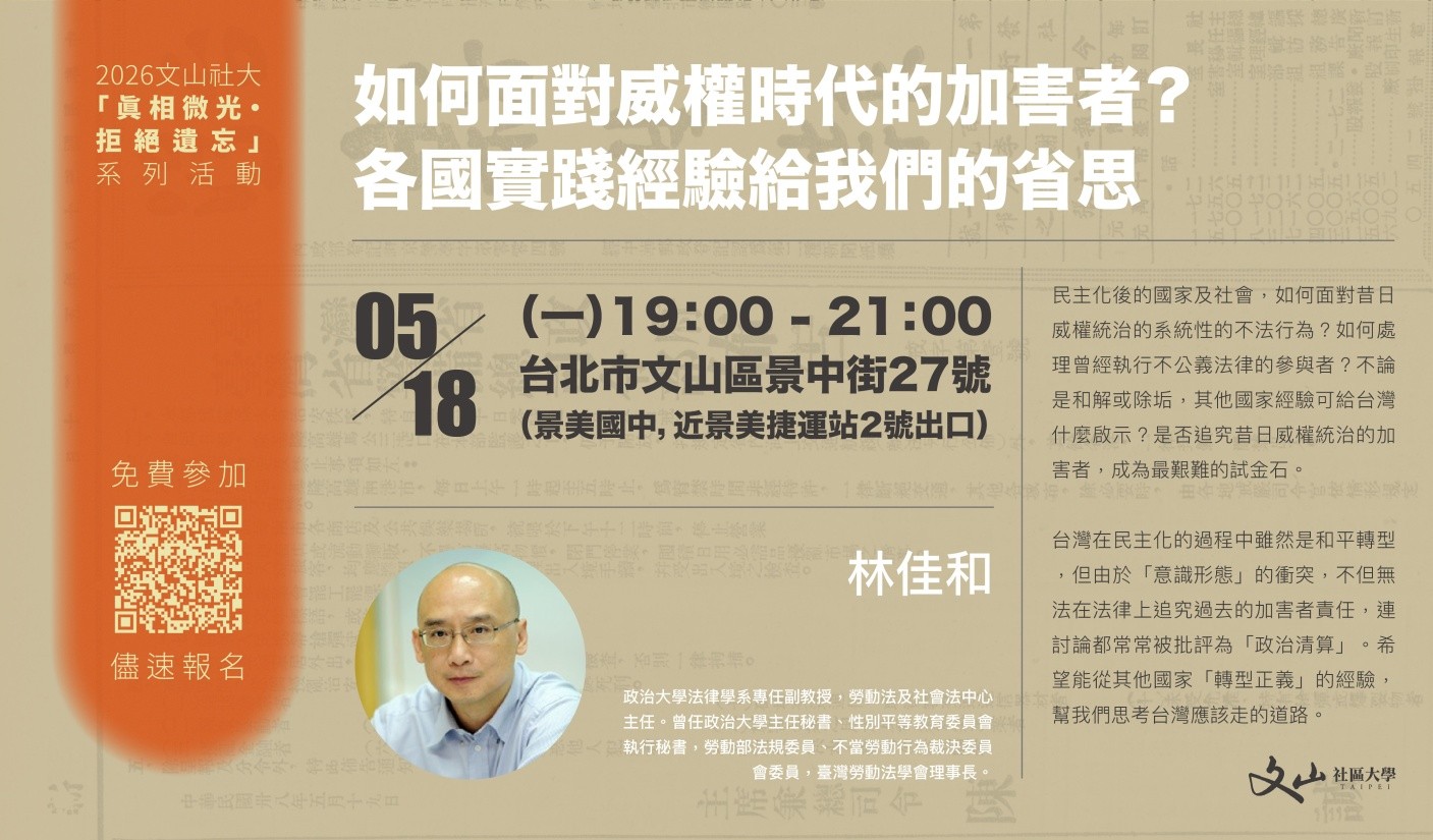 ※講題:如何面對威權時代的加害者?各國實踐經驗給我們的省思
