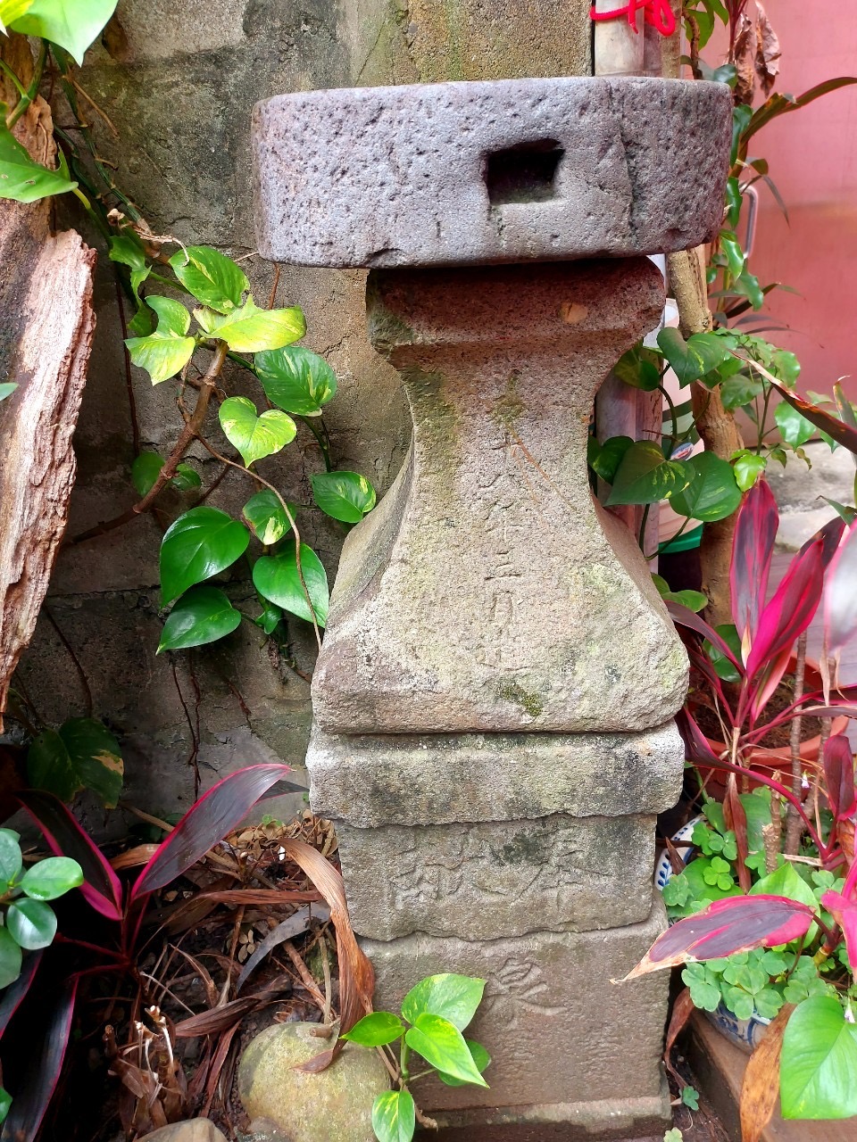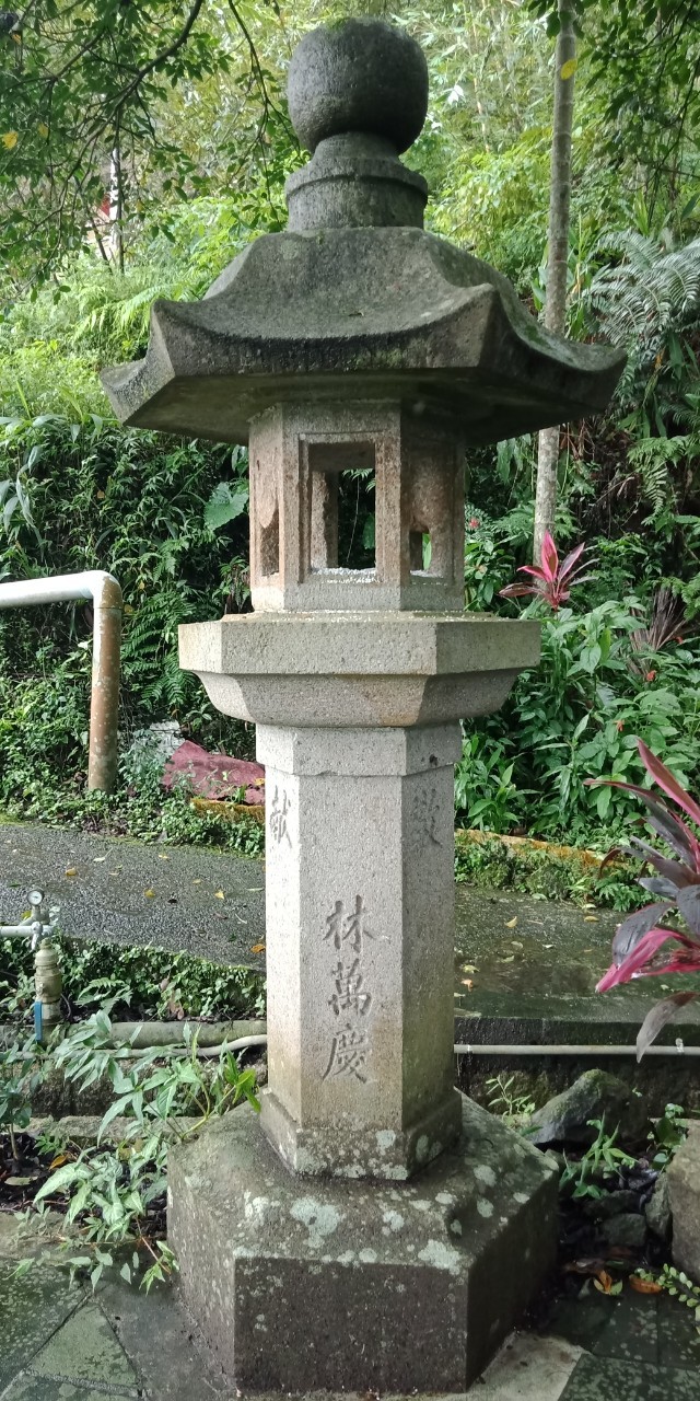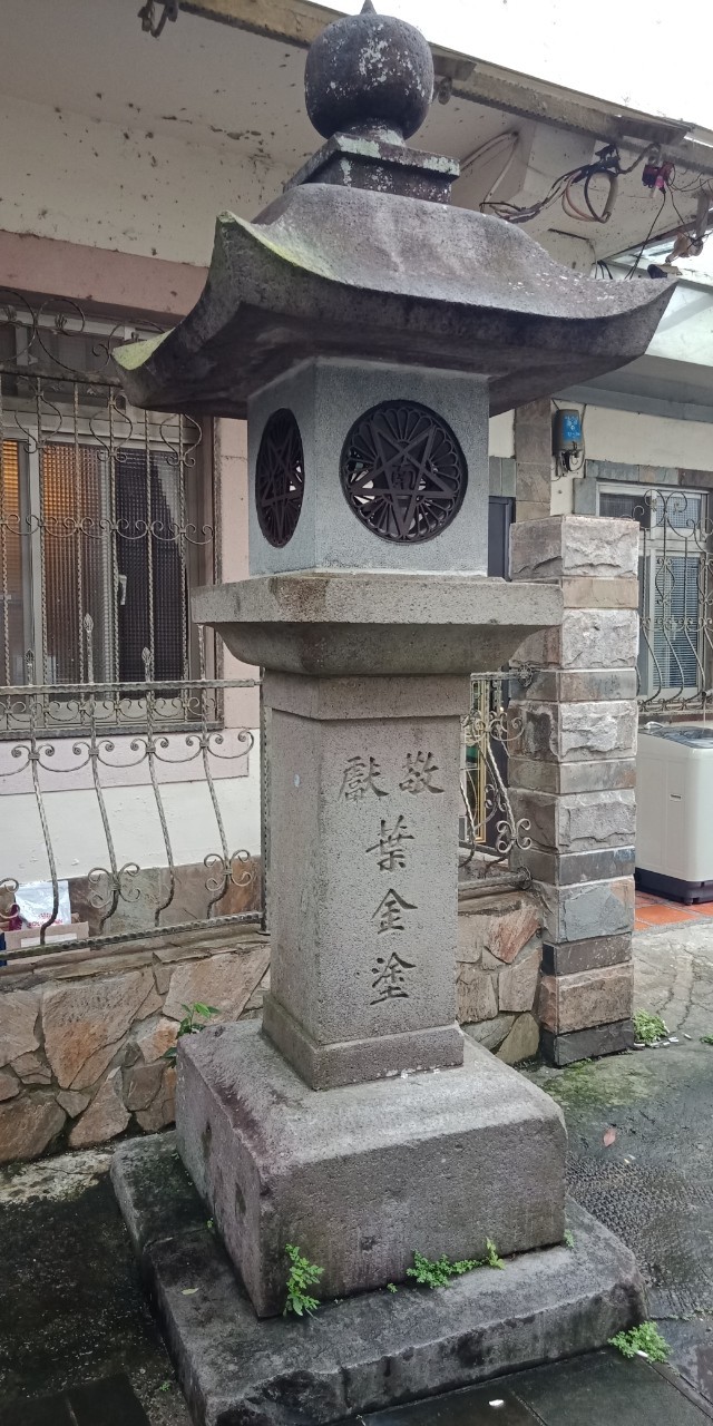 3.參道兩旁有各種石敬獻:石燈籠、石涼亭、石獅⋯⋯等等。敬獻者多為來自大稻埕地區的商人,也有來自基隆、高雄、日本的敬獻,這與他們視呂洞賓為財神有關。但從敬獻的時間集中在昭和十三、十四年(1939年)來看,應該也是?了要迎接皇記二千六百年(1940年)這個大日子的到來。