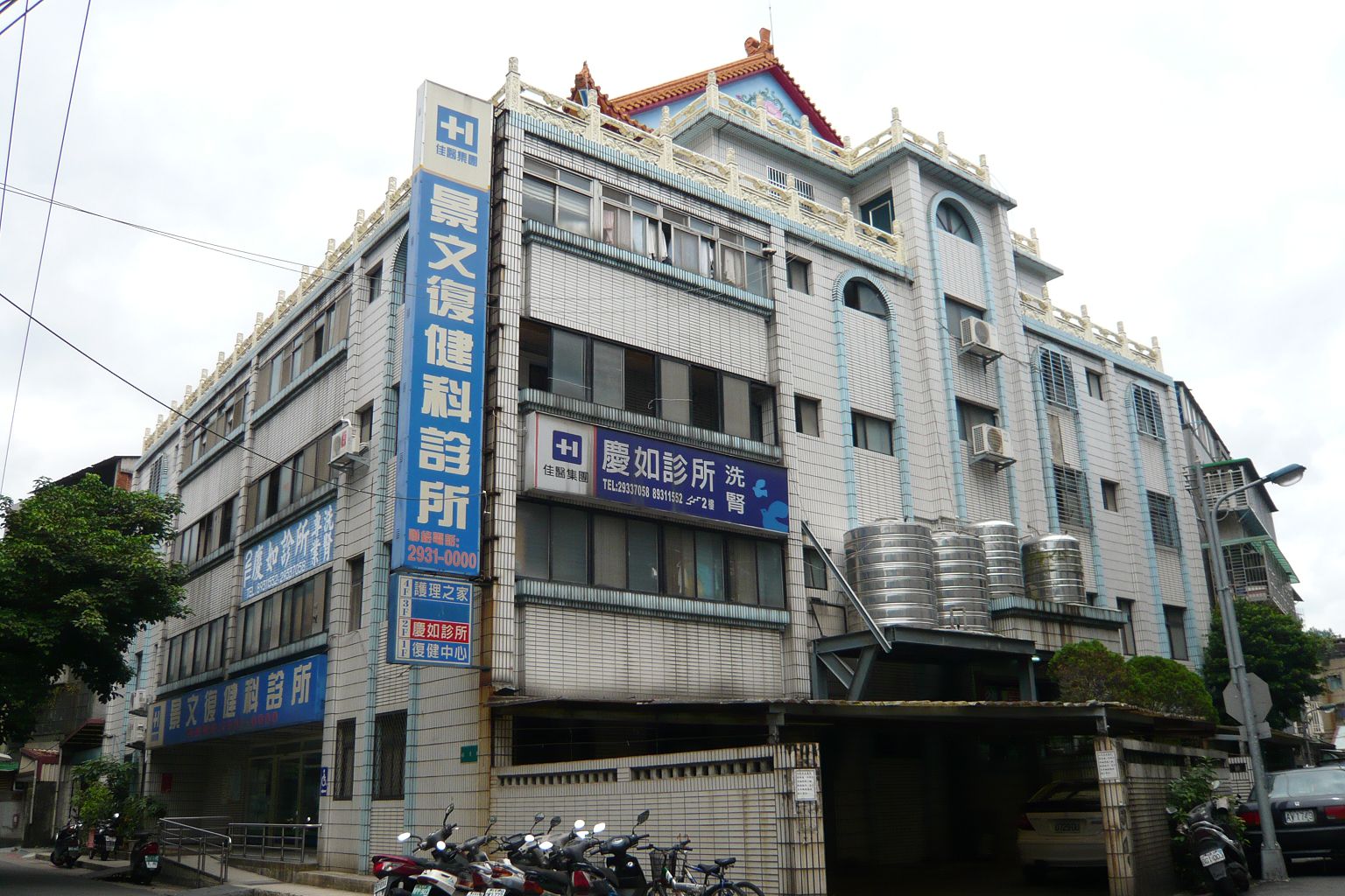 萬慶街18號復健科的頂樓,屋頂裝飾著黃色琉璃瓦,原來坐落此地的是高積淵宗祠(1937年建),因祠堂不敷使用,1987年拆除重建呈現貌,宗祠移至頂樓,其餘空間出租增加祭祀公業收入,此為最早來開發景美的高氏家族中下派三房的宗祠(上派佛字輩有五房,下派積字輩有八房,簡稱五佛八積),離此地不遠景福街227巷的高佛成宗祠則是上派三房的宗祠。(圖3)(圖4)