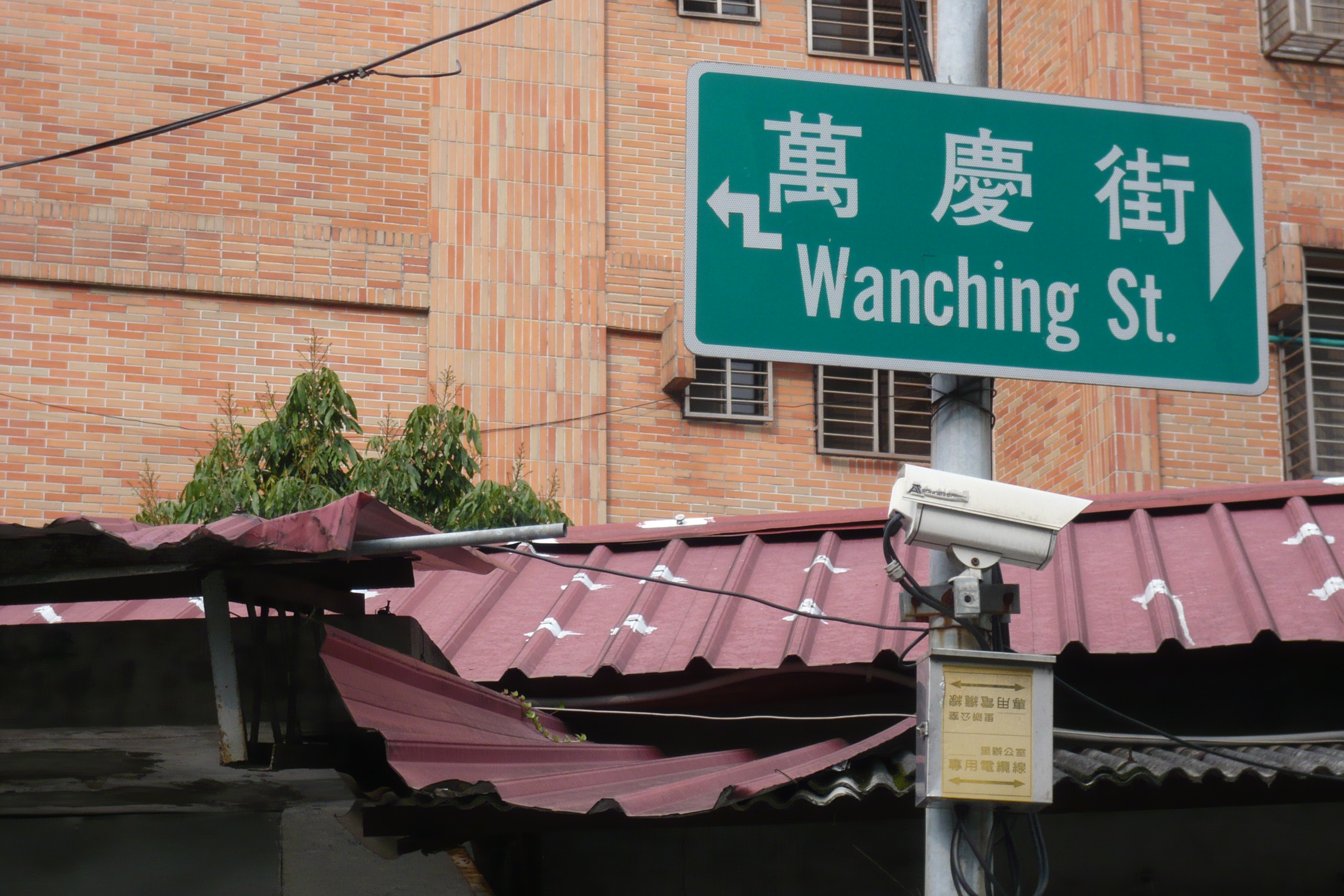 走出育英街57巷左轉,在育英街與萬慶街轉角處可看到一個告訴你要轉個彎才可以找到萬慶街的路標,這會不會是全世界唯一的要轉彎街道路標?(圖15)